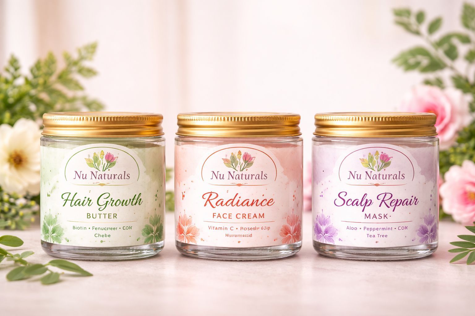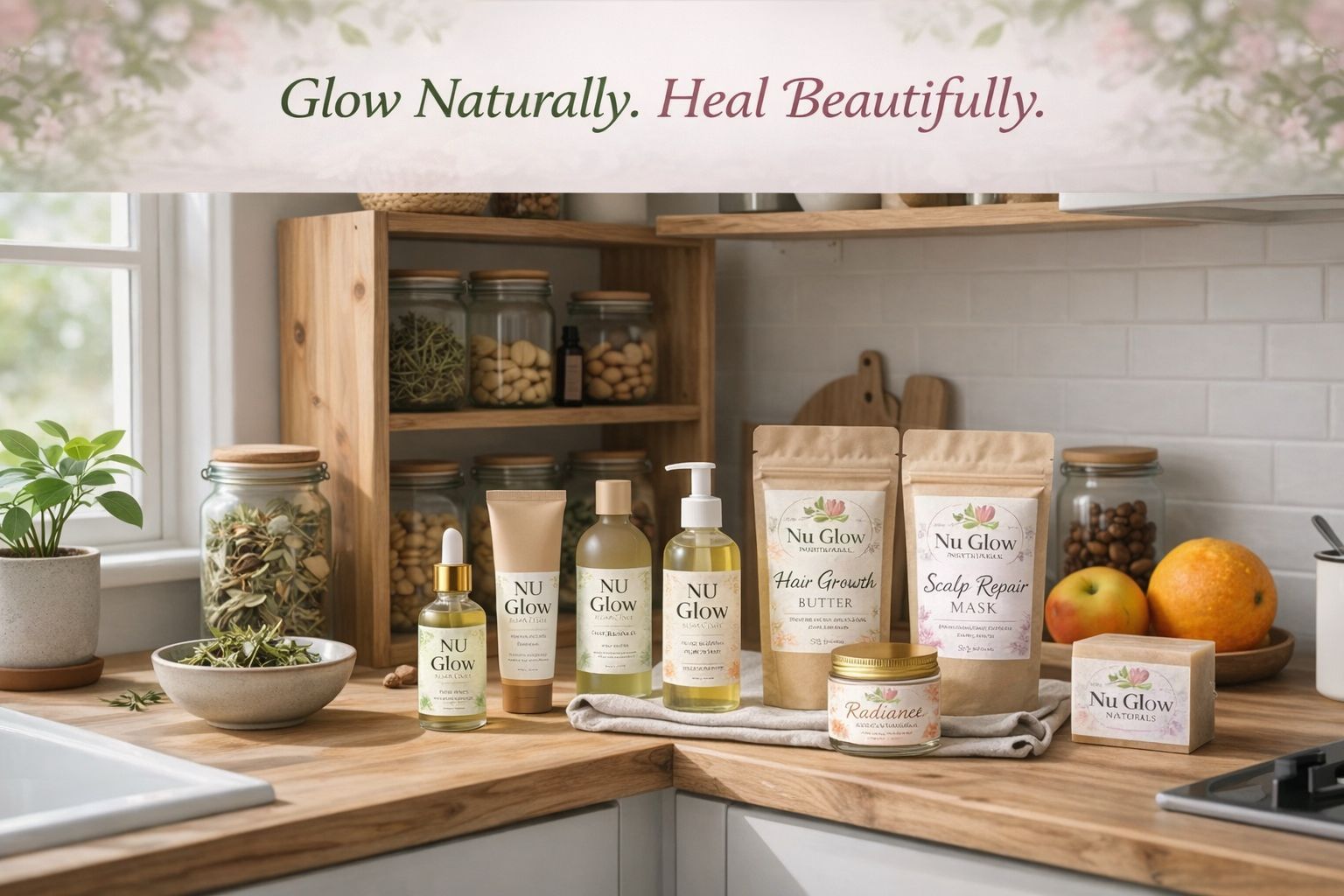 NU Glow Naturals started right in my kitchen—mixing natural ingredients, testing what truly worked, and creating products I could trust on my own hair and skin.